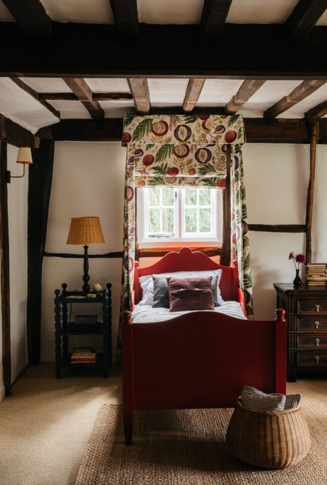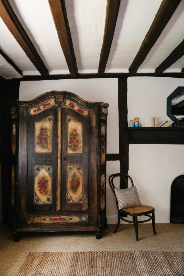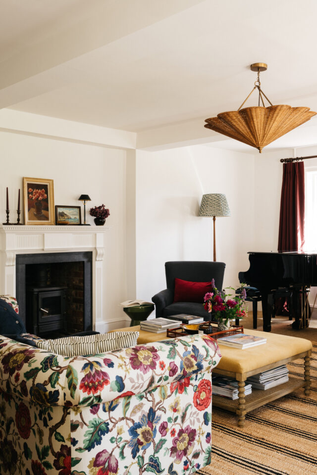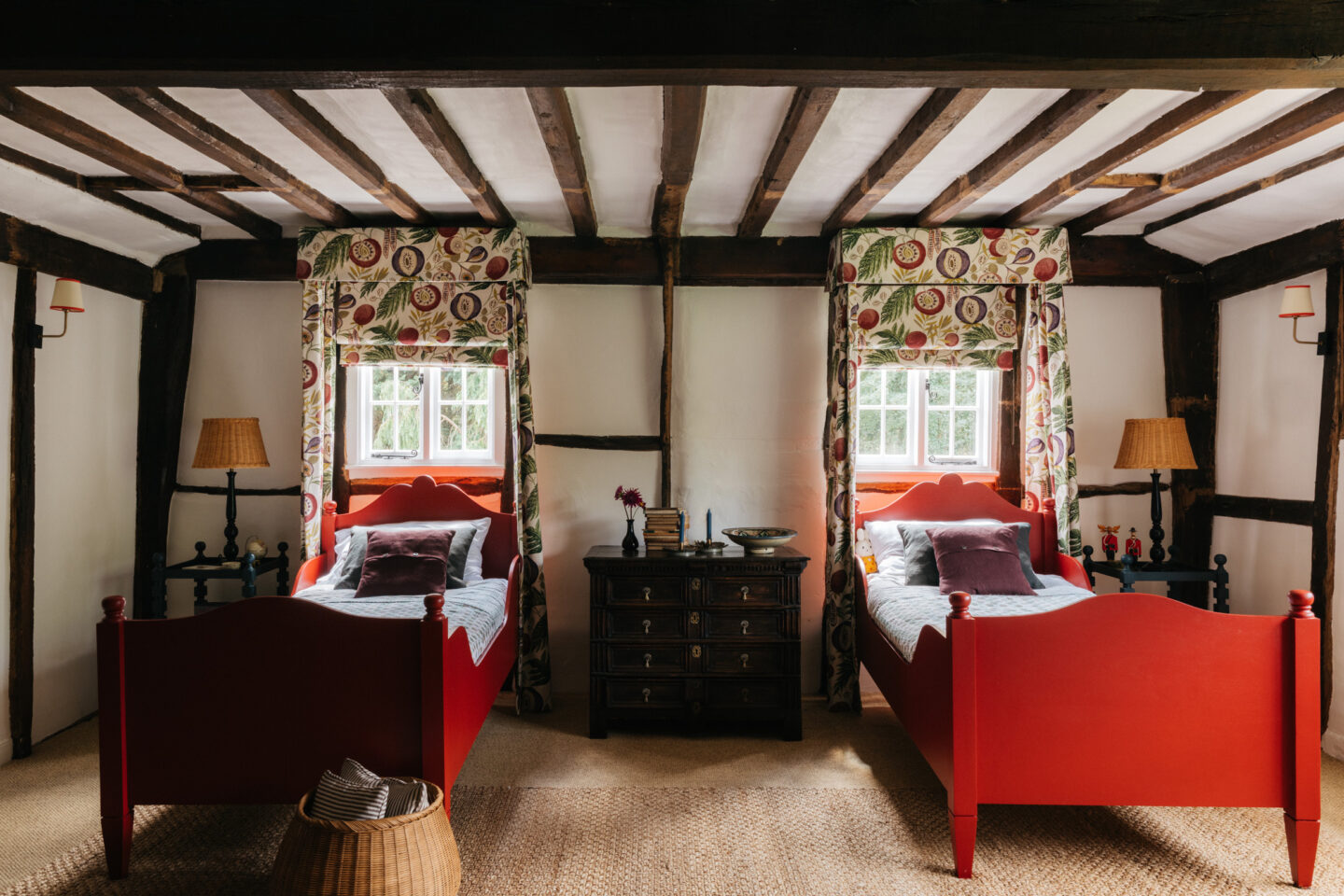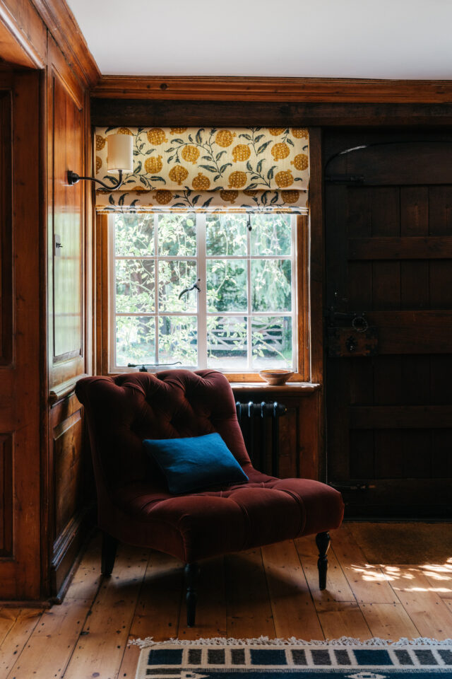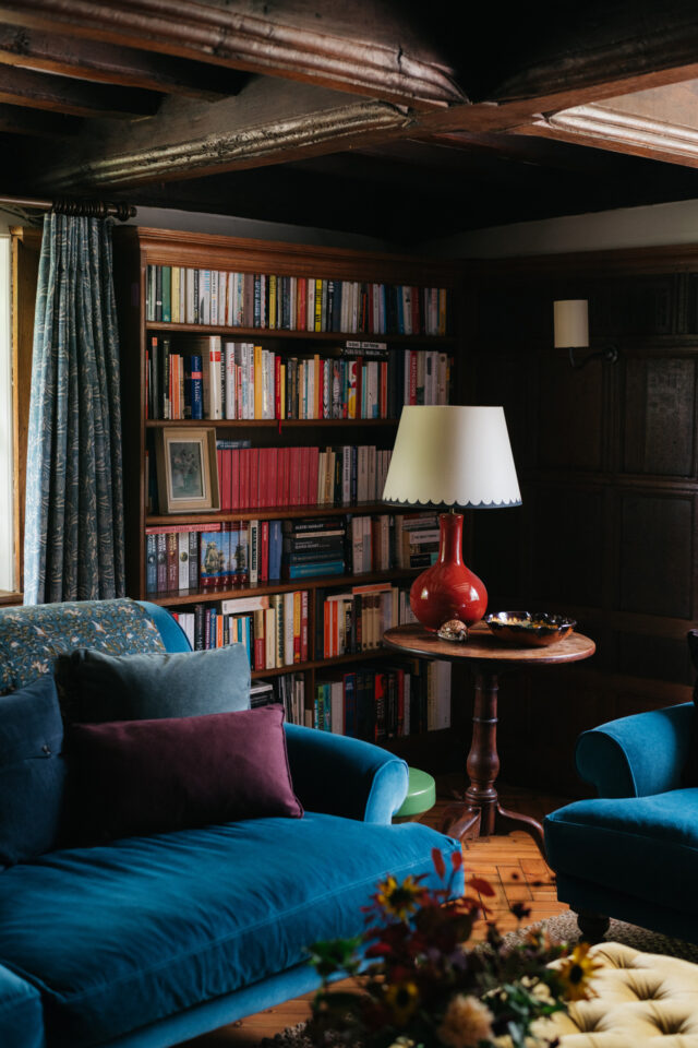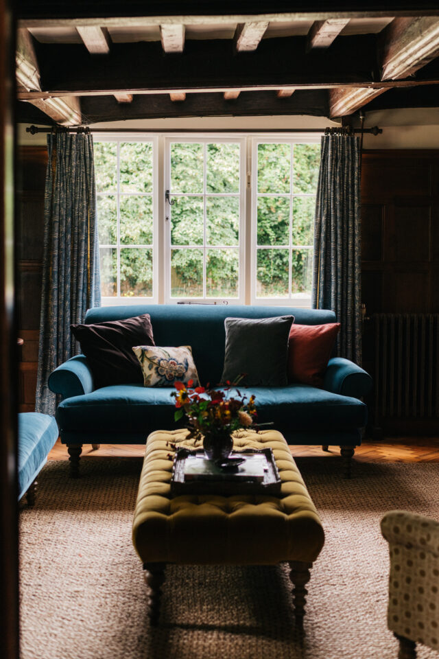 This sprawling Wealden home in the Kent countryside is a mix of several architectural periods, and was rather incoherent when our clients bought it. We warmed it up by adding strong colours, rich patterns and playful elements for the four young children. We then sourced antiques, had bespoke furniture made and added layers of textures and lighting to create atmosphere and warmth for the owners to enjoy with their friends and family