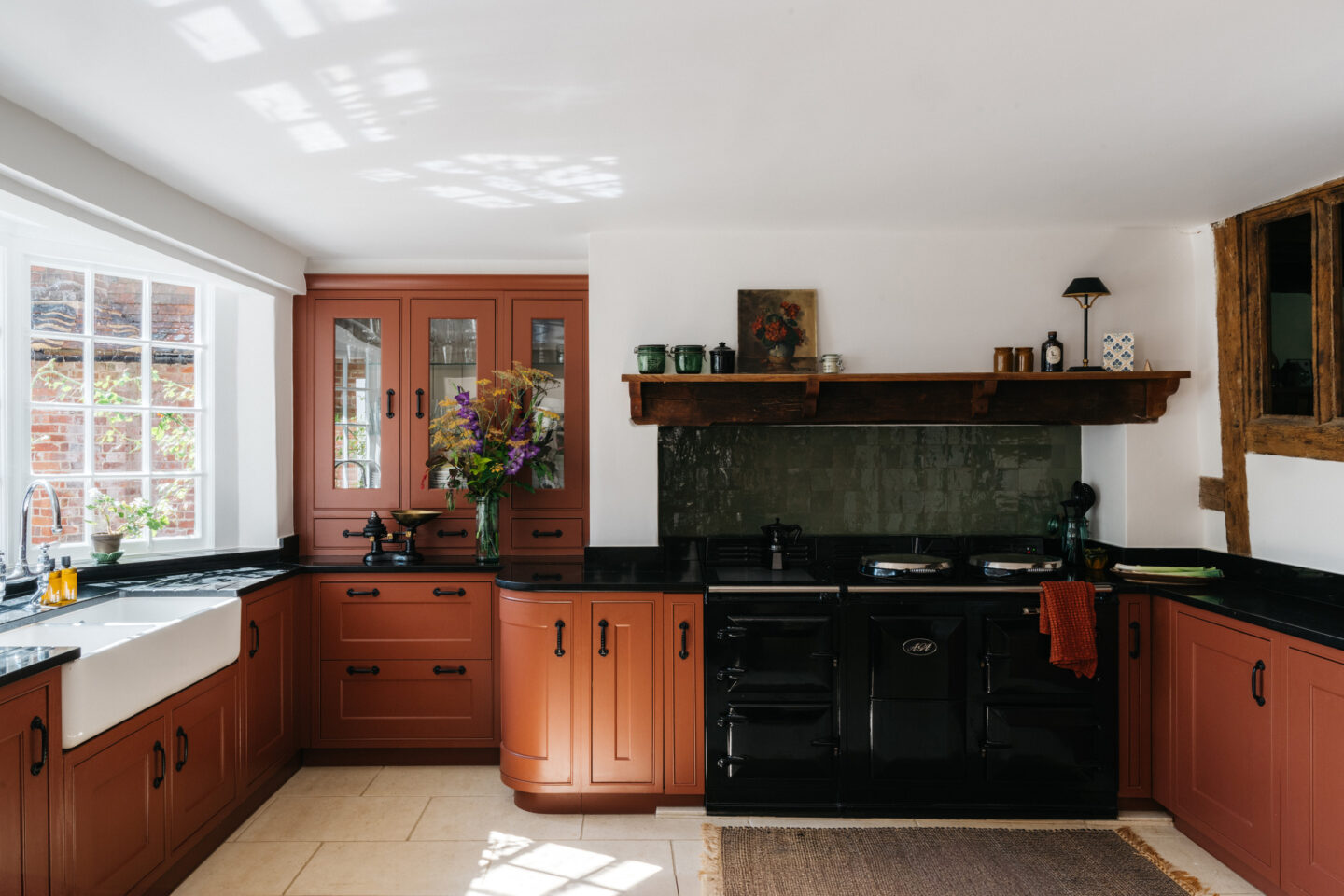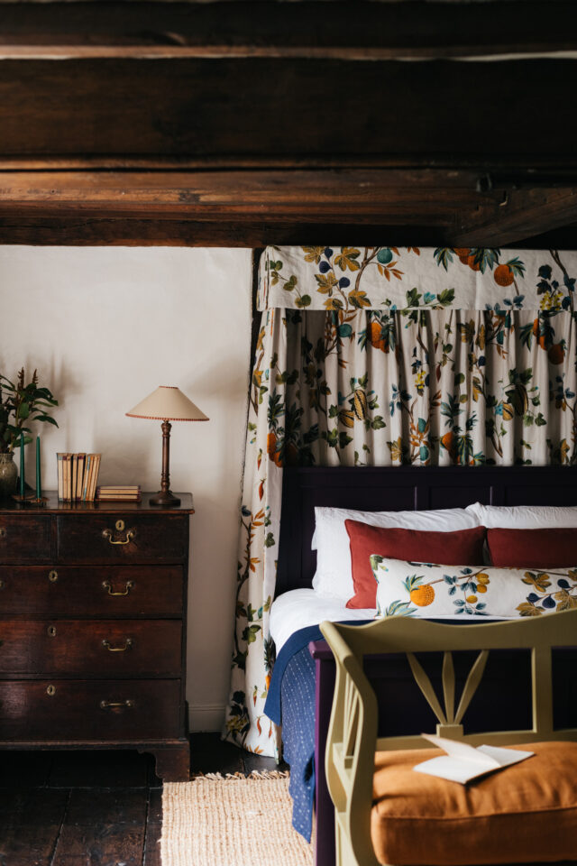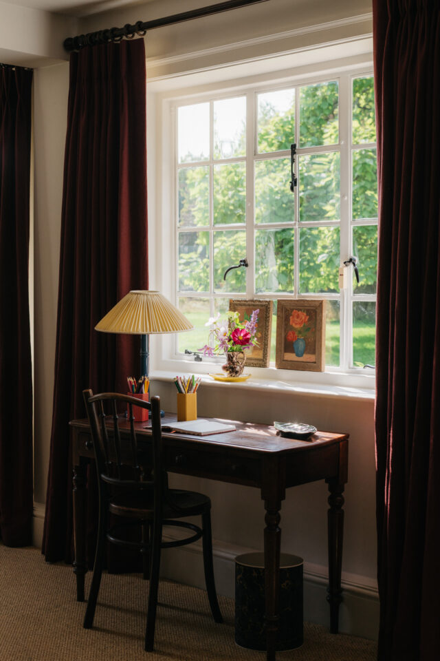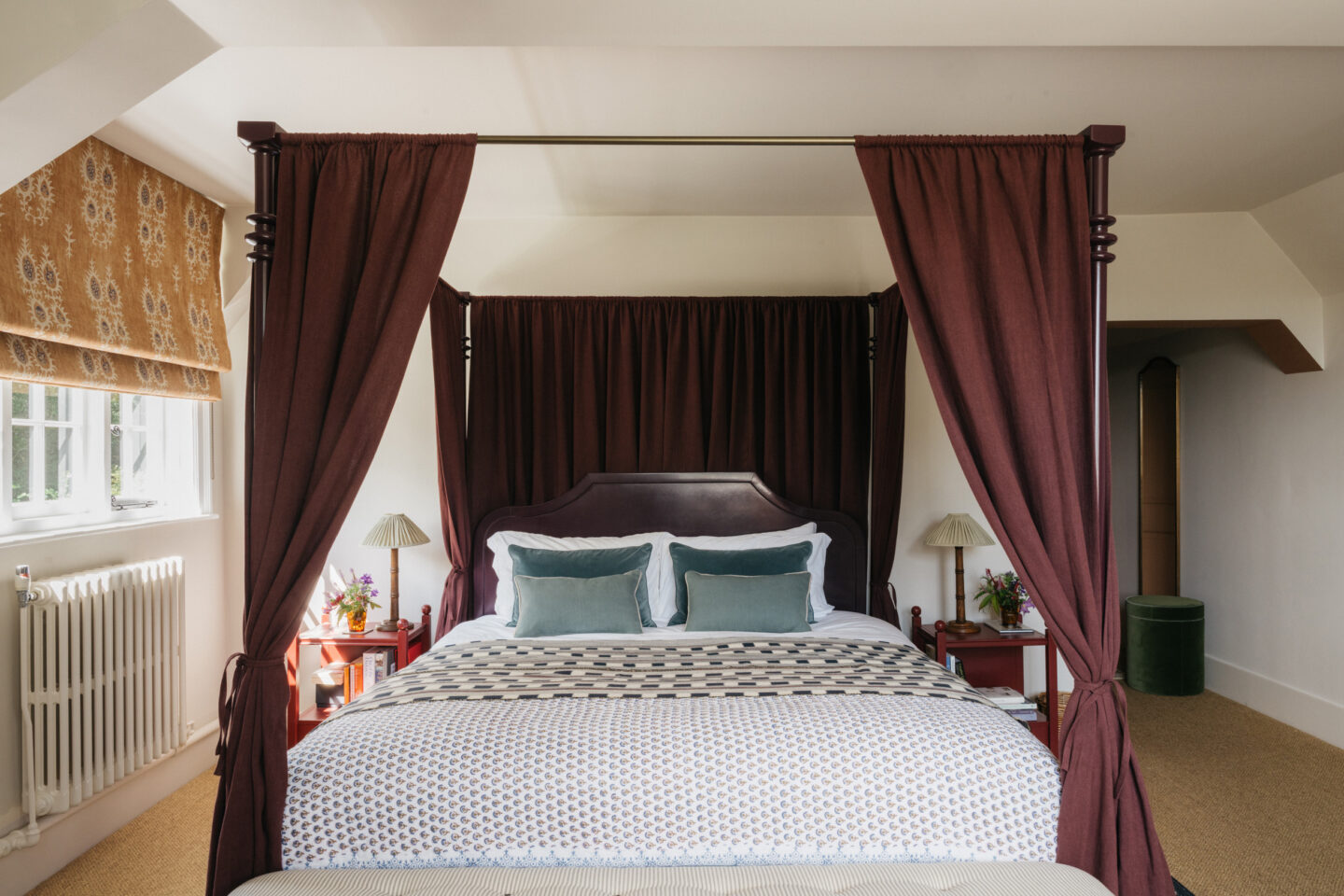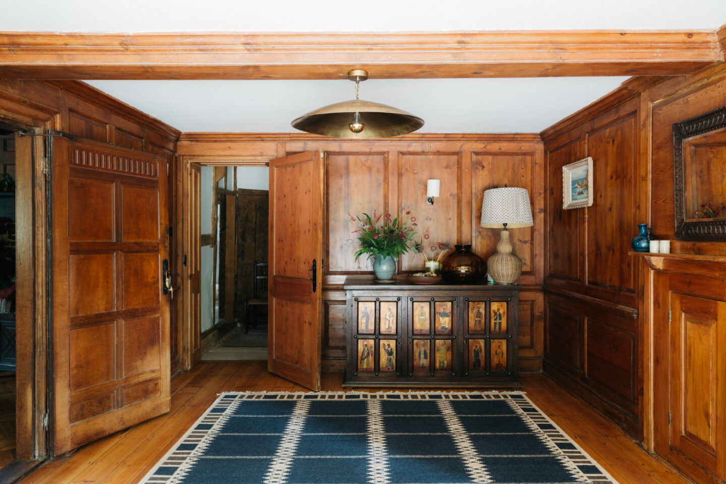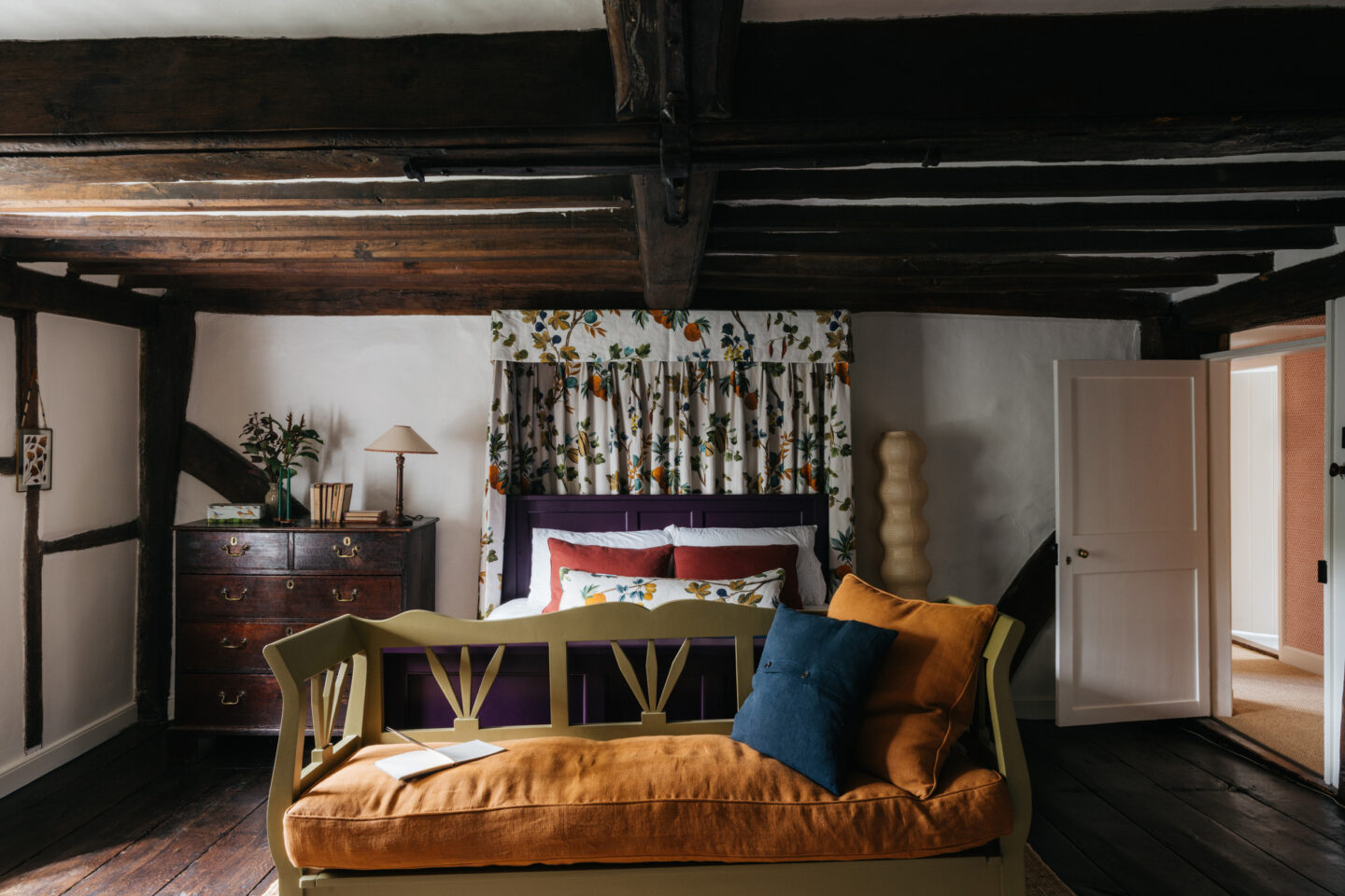 This sprawling Wealden home in the Kent countryside is a mix of several architectural periods, and was rather incoherent when our clients bought it. We warmed it up by adding strong colours, rich patterns and playful elements for the four young children. We then sourced antiques, had bespoke furniture made and added layers of textures and lighting to create atmosphere and warmth for the owners to enjoy with their friends and family
